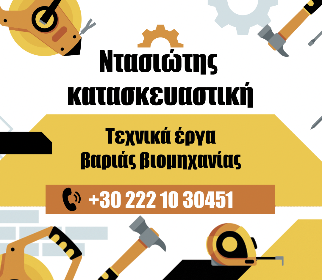 Η “Γ.ΝΤΑΣΙΩΤΗΣ & ΣΙΑ Ο.Ε.” με μακροχρόνια εμπειρία και έργα υψηλών προδιαγραφών αποτελεί μία από τις σταθερά ανερχόμενες και καταξιωμένες εταιρείες στον κατασκευαστικό τομέα. Δραστηριοποιείται στην ανάληψη και εκτέλεση ιδιωτικών έργων στο χώρο της βιομηχανίας.